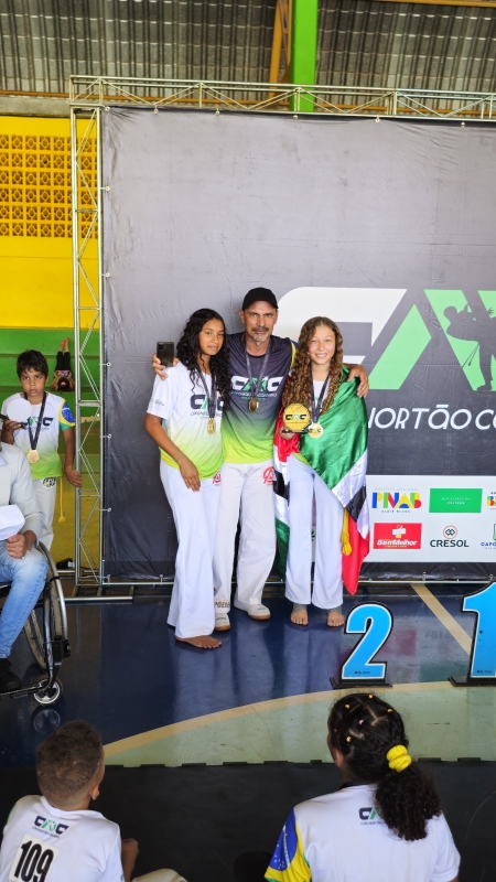 As atletas Julya Kawanny, conhecida na roda como Moana, e Yasmim Vitória, a Chocolate, subiram ao pódio na categoria Juvenil Feminina, conquistando 2º e 3º lugares, respectivamente. As duas fazem parte do Projeto Cultural de Capoeira de Dom Aquino, coordenado pelo Professor/Mestre Silvânio, o Nego Ninja.